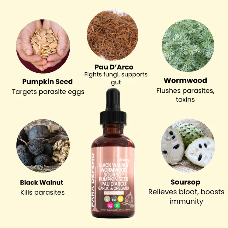 It has a bold herbal flavor with natural bitterness from the Black Walnut and Wormwood—balanced by subtle earthiness from clove, garlic, and pumpkin seed. No sugar or sweeteners—just potent plant power.